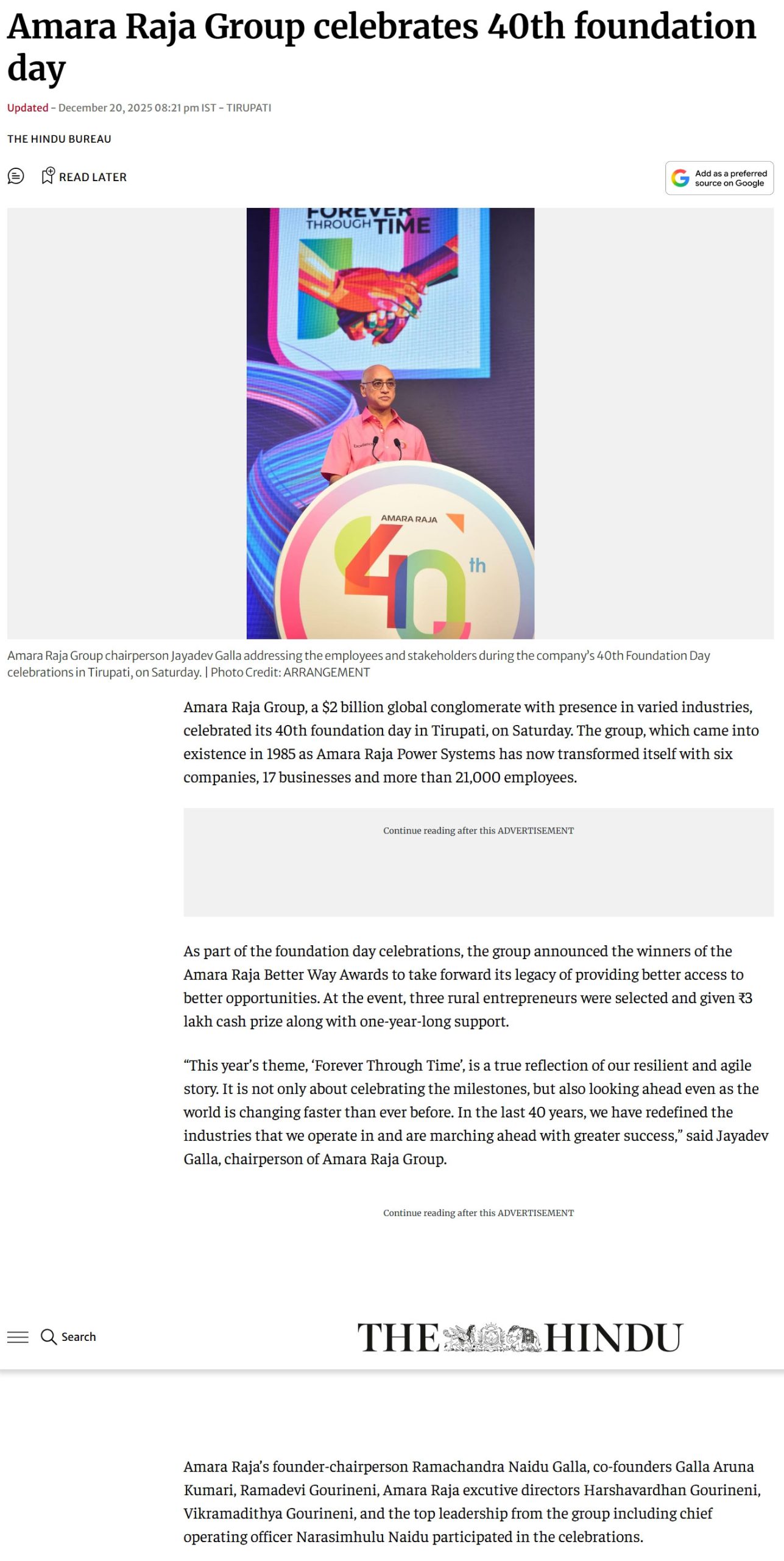 Amara Raja Group celebrates 40th foundation day