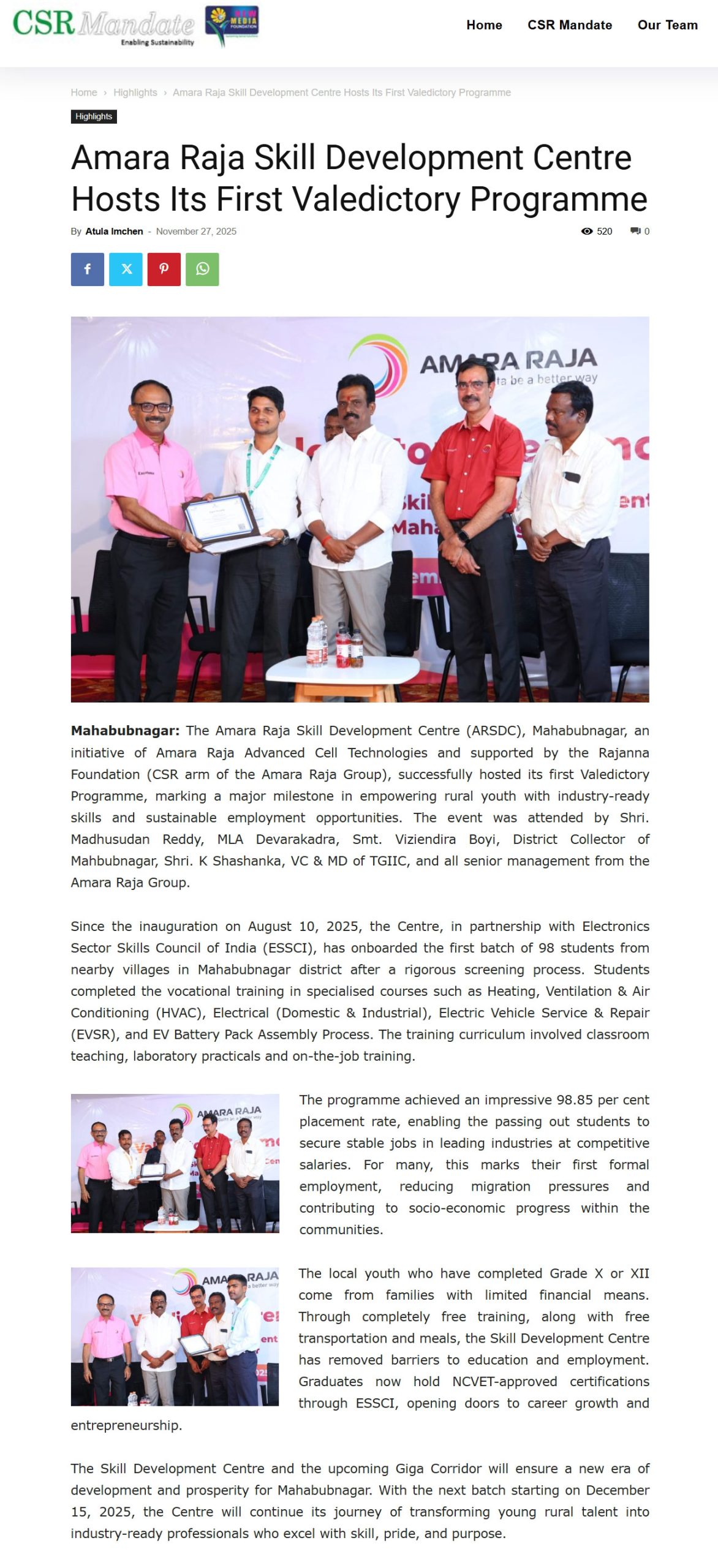 Amara Raja Skill Development Centre Hosts Its First Valedictory Programme