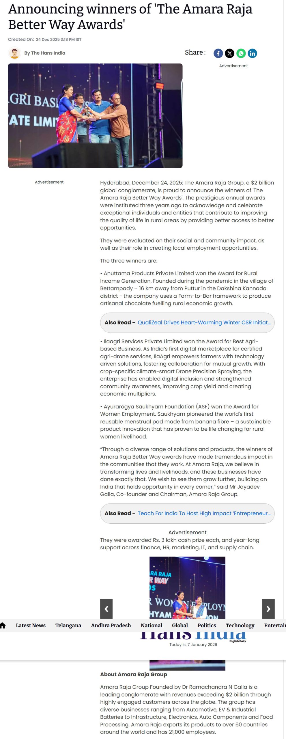 Announcing winners of ‘The Amara Raja Better Way Awards’